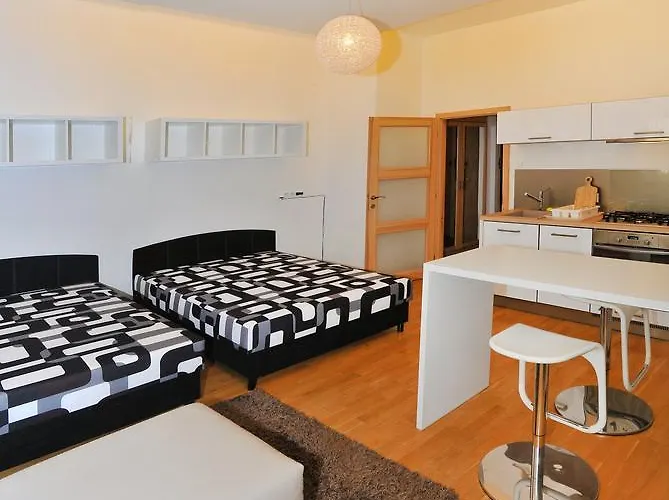 Para mayor comodidad de los huéspedes, el apartamento con instalaciones de autoservicio como horno de microondas, nevera y utensilios de cocina. El restaurante V KolkovnE, a una distancia de 150 metros de este establecimiento, ofrece una amplia gama de platos de la cocina checa. La parada de autobús U Stare skoly está a muy poca distancia de este alojamiento.